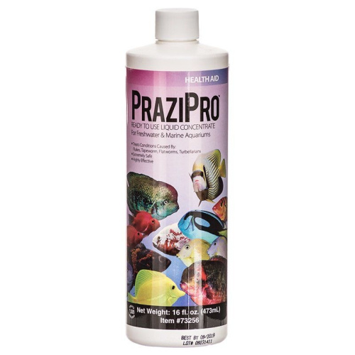 Aquarium Solutions PraziPro by Hikari is a ready-to-use, liquid concentrate, specially developed to effectively control unwanted parasites (including flukes, tapeworm and flatworm) in freshwater or marine aquariums.