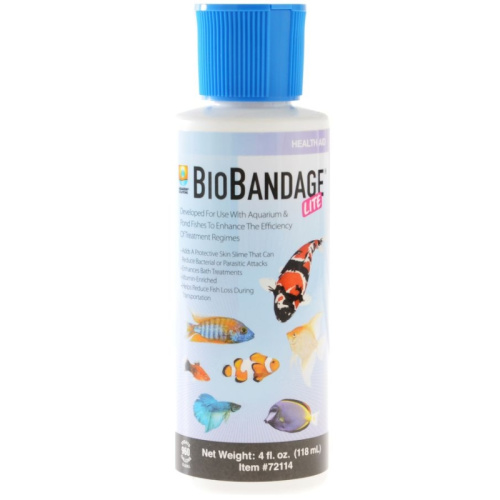 Hikaris Bio-Bandage was developed for use with aquarium and pond fishes to enhance the efficiency of treatment regimes. This vitamin-enriched formula adds a protective slime coat that can reduce bacterial or parasitic attacks.