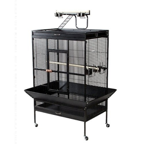 The Select Wrought Iron Play Top Parrot Cage features a cage top playpen which provides your bird hours of enjoyment and exercise. This cage is designed for;Pionus Parrots, Amazon Parrots, and other similarly sized large parrots.;Built in the U.S.A.