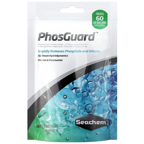 SeaChem PhosGuard rapidly removes phosphate and silicate from marine and freshwater aquaria. It is not recommended for phosphate buffered freshwater. SeaChem PhosGuard is highly porous for high capacity and bead-shaped for optimum water flow.