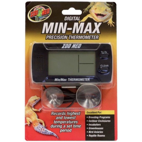 Zoo Meds Min/Max Digital Thermometer is perfect for incubation, basking sites, hibernation, and habitat temperature monitoring. Now you can know exactly how hot and cool your habitat or incubator is getting. In some cases, temperature fluctuation is ok, but now you won't have to guess, you will know that you are providing ideal conditions for your pet!